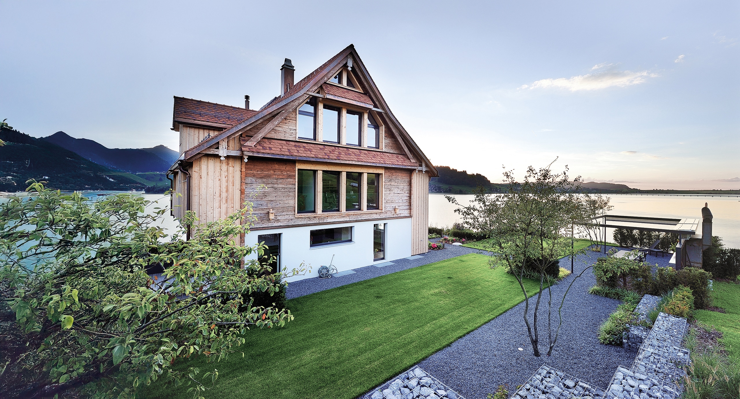 Ausserhalb der Bauzone gelten strikte bauliche Vorschriften. Alt und Neu haben sich zu gleichen. Massivholz aus dem Rückbau findet Wiederverwendung an der Fassade des Neubaus. Der Innenausbau ist dagegen nach den heutigen Bedürfnissen gestaltet und ermöglicht einen modernen Kontrast mit überraschenden Details.
