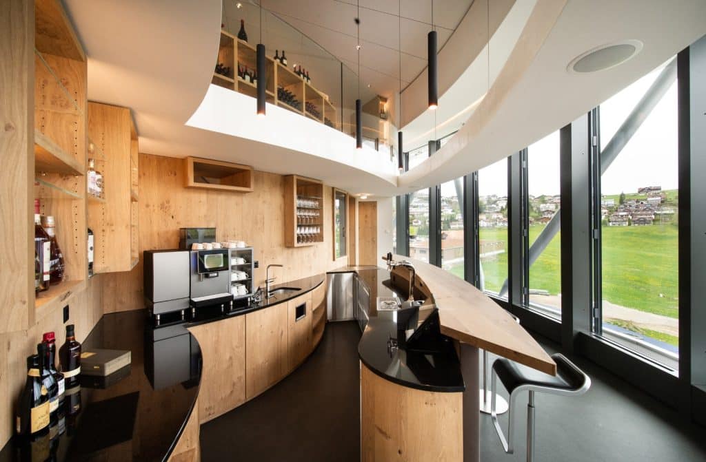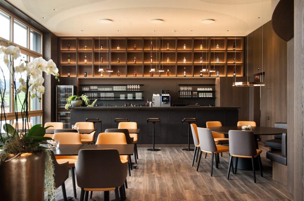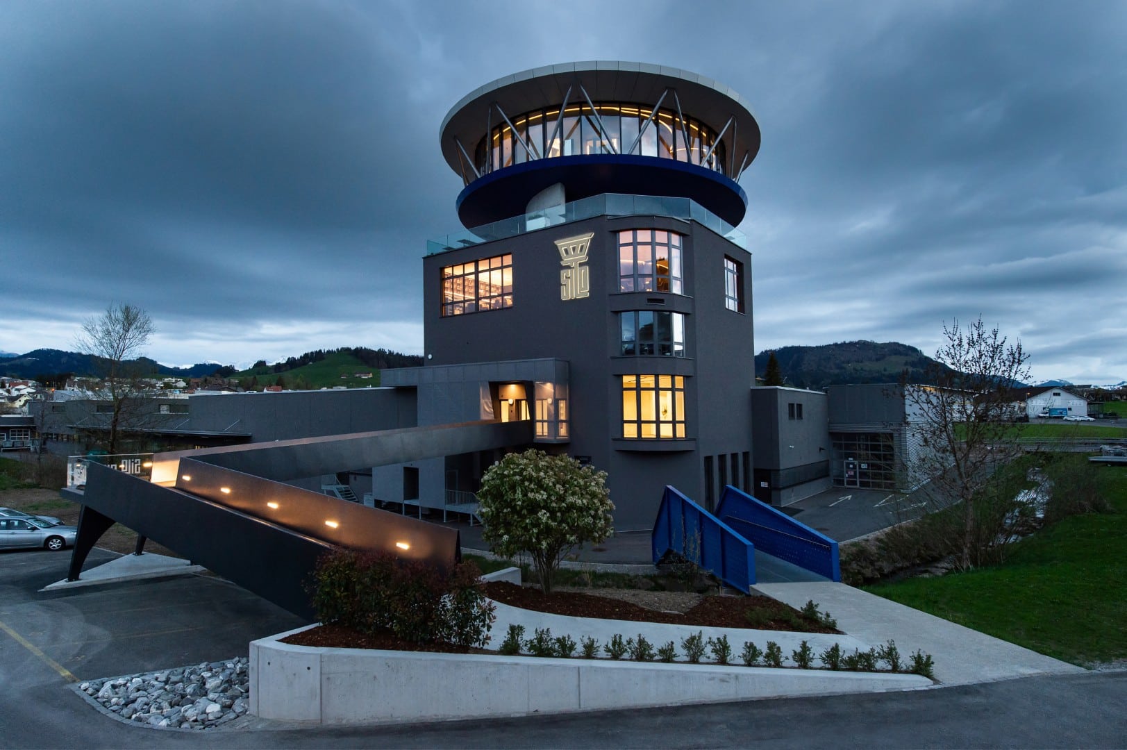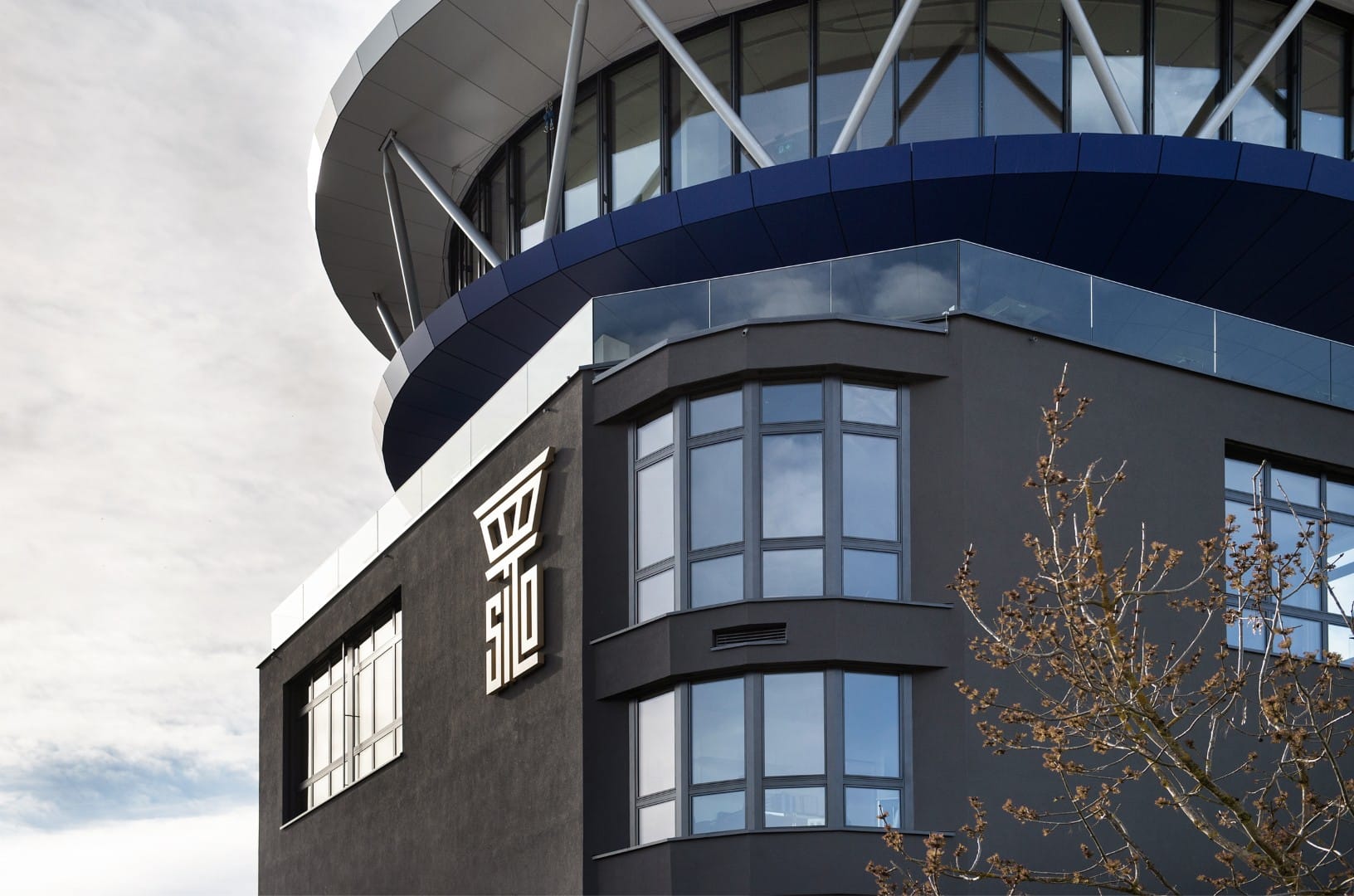 Der Wunsch nach Verpflegungsmöglichkeiten für Betriebsangehörige, Kunden und Gäste führte zur Umnutzung und Aufstockung einer alten Siloanlage. Die vielseitige Formensprache des Panorama-Restaurants, der Lounge und der Kantine, gepaart mit ausgefeilter Akustik, überzeugt die Gäste und sorgt für ein angenehmes Ambiente.