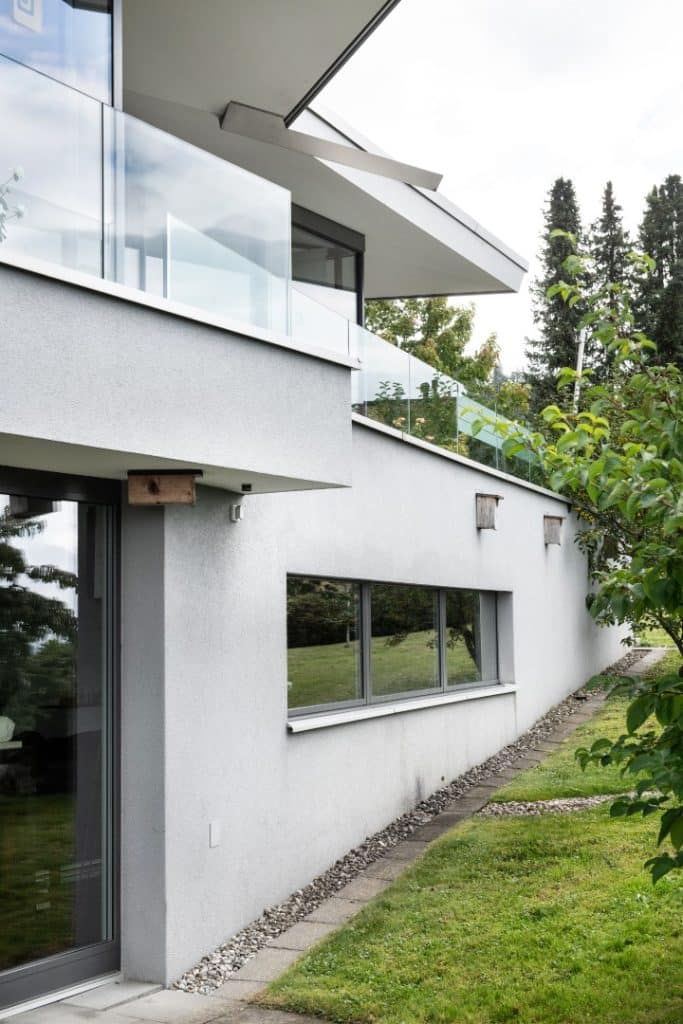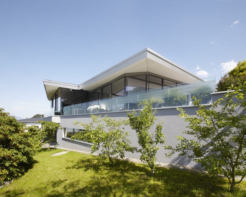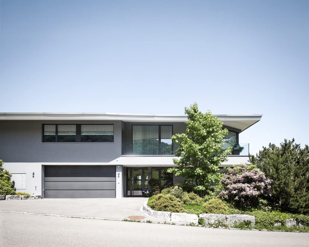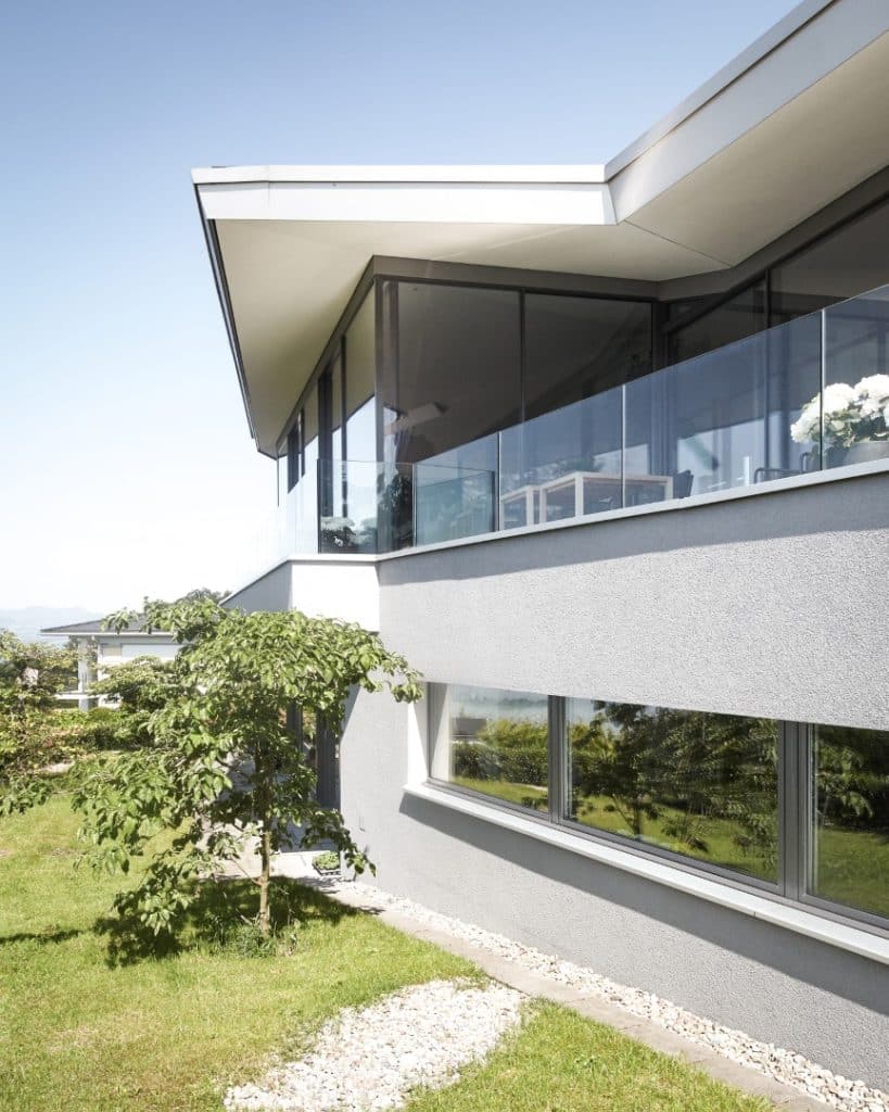 Eingebettet in die Landschaft, umgeben von einem faszinierenden Garten steht das Einfamilienhaus über dem Zürichsee. Grosse filigrane Fenster ermöglichen den Blick in die Weite.